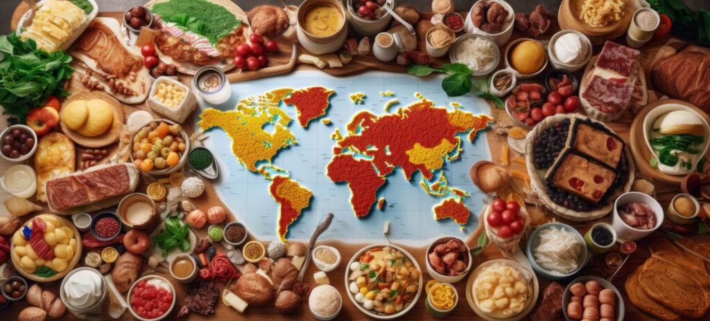 Tortillas de maïs, viande (bœuf haché, poulet ou porc), oignons, ail, tomates, laitue, fromage râpé, avocat ou guacamole, coriandre, citron vert, épices poivre